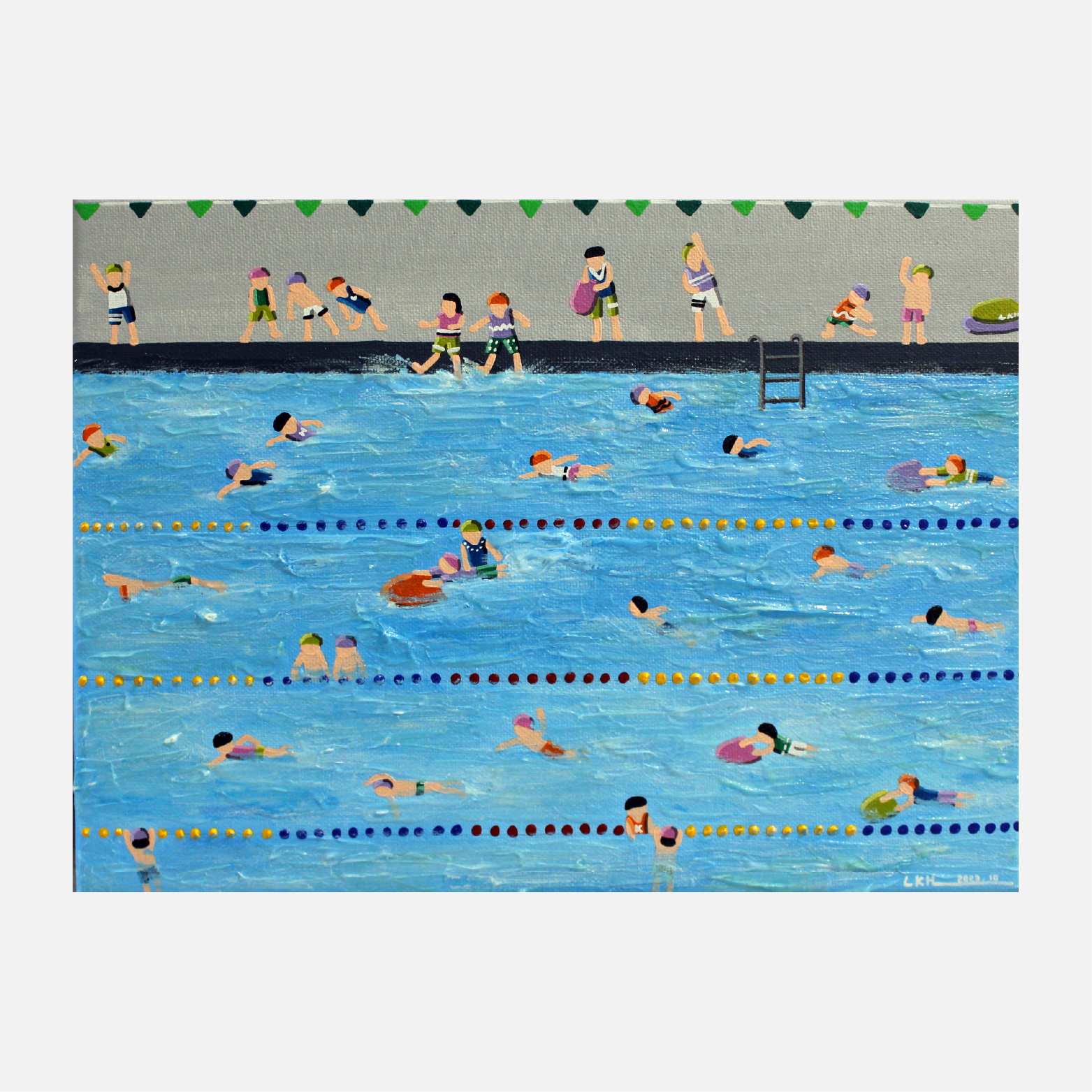 이경현 작가는 현대인의 일상을 멀리서 바라보며, 그 안에 담긴 관계와 감정을 포착합니다. 그의 화면에는 표정 없는 인물들이 반복적으로 등장하지만, 그 무표정 속에는 각기 다른 이야기가 숨어 있습니다. 일상의 군상들은 때로는 유머러스하게, 때로는 쓸쓸하게 그려지며, 분주한 삶 속에서 우리가 잊고 지내는 감정의 결을 환기시킵니다. 작가는 사람과 사회, 그리고 그 사이의 거리에서 생겨나는 미묘한 긴장과 공허를 섬세한 시선으로 풀어냅니다. 멀리서 보면 일정한 리듬으로 움직이는 작은 인물들이 하나의 패턴처럼 보이지만, 가까이 다가가면 각자의 제스처와 색감이 고유한 존재로 드러납니다. 이경현 작가의 작품은 개인과 사회의 관계, 익명성과 존재의 의미를 동시에 사유하게 합니다. 단순한 풍경처럼 보이지만, 그 안에는 우리가 살아가는 시대의 모습과 감정이 응축되어 있습니다.