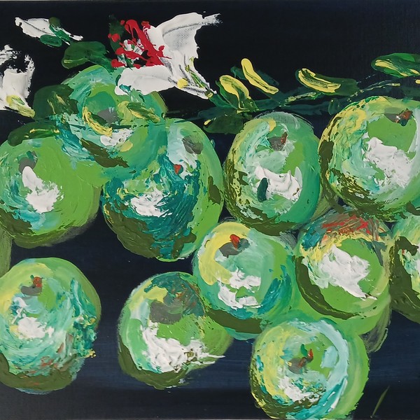 한영희 열두개 초록사과와 흰 백합화