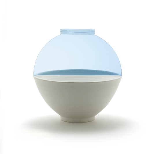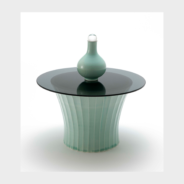 요 근래 나의 작업은 도자 기물 부분을 유리 기물로 치환하여 제작하고, 흙이 가지고 있는 미감 뿐만 아니라 다양한 소재의 결합으로 탐구하려 한다.