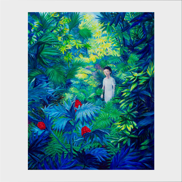 <푸른 숲과 소년>은 제주, 하와이와 뉴질랜드의 숲을 배경으로 미지의 미래에 대한 두려움에 맞서 나아가려는 소년을 통해 미래의 희망을 표현했다. 푸른 숲은 살아가는 데 미지의 위험과 공존하는 방법이 함께 있는 공간으로 치유의 경험을 준다. 분화구 등 척박한 환경에서 자라난 풀과 관목이 울창한 숲을 이루어 자연의 놀라운 회복력, 생명력을 보여준다. 자연 속에서 밀접한 영향을 받는 소년, 소녀를 통해 치유와 회복은 상징적으로 표현된다. 다양한 동식물과 함께 특히 까마귀, 푸른 새와 붉은 새는 소년, 소녀의 동반자, 친구이자 이웃이다. 그들은 다양하고 미묘한 색으로 여러 가지 감정을 상징한다. <오히아레후아와 소녀>, <푸른 숲과 소년> 연작들은 인간 사회의 영속성, 삶의 의미를 성찰하고 미래 세대에 대한 희망과 응원의 메시지를 전한다.