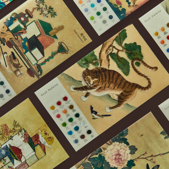 각 민화가 그려진 샘플 트레이싱지가 함께 구성됐습니다.