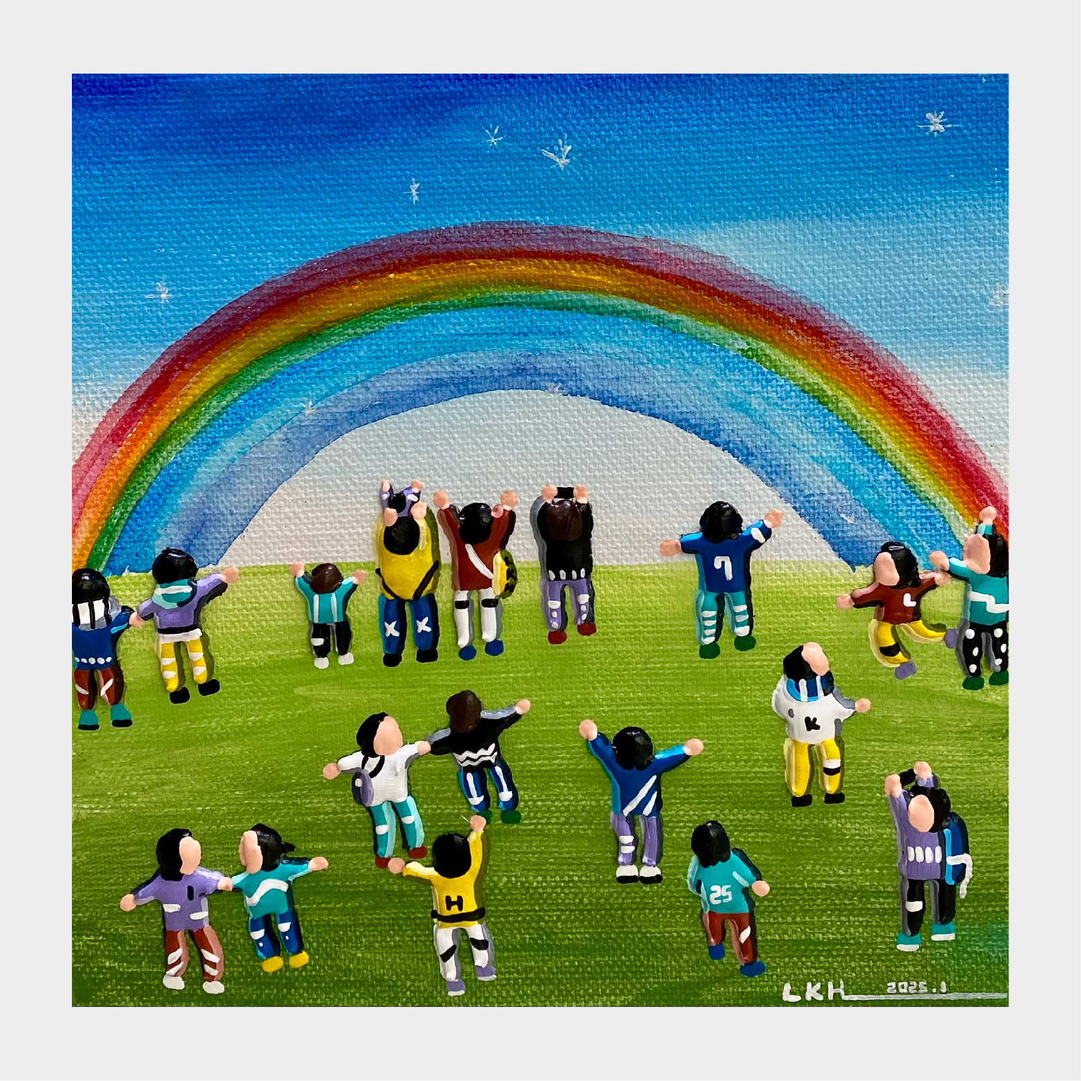 이경현 작가는 현대인의 일상을 멀리서 바라보며, 그 안에 담긴 관계와 감정을 포착합니다. 그의 화면에는 표정 없는 인물들이 반복적으로 등장하지만, 그 무표정 속에는 각기 다른 이야기가 숨어 있습니다. 일상의 군상들은 때로는 유머러스하게, 때로는 쓸쓸하게 그려지며, 분주한 삶 속에서 우리가 잊고 지내는 감정의 결을 환기시킵니다. 작가는 사람과 사회, 그리고 그 사이의 거리에서 생겨나는 미묘한 긴장과 공허를 섬세한 시선으로 풀어냅니다. 멀리서 보면 일정한 리듬으로 움직이는 작은 인물들이 하나의 패턴처럼 보이지만, 가까이 다가가면 각자의 제스처와 색감이 고유한 존재로 드러납니다. 이경현 작가의 작품은 개인과 사회의 관계, 익명성과 존재의 의미를 동시에 사유하게 합니다. 단순한 풍경처럼 보이지만, 그 안에는 우리가 살아가는 시대의 모습과 감정이 응축되어 있습니다.