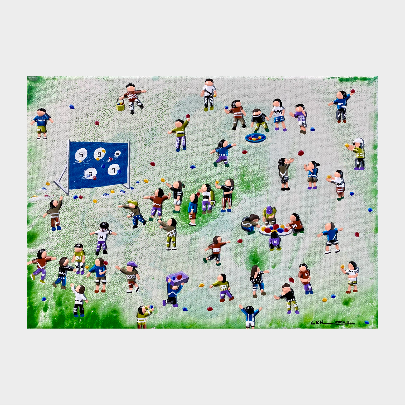 이경현 작가는 현대인의 일상을 멀리서 바라보며, 그 안에 담긴 관계와 감정을 포착합니다. 그의 화면에는 표정 없는 인물들이 반복적으로 등장하지만, 그 무표정 속에는 각기 다른 이야기가 숨어 있습니다. 일상의 군상들은 때로는 유머러스하게, 때로는 쓸쓸하게 그려지며, 분주한 삶 속에서 우리가 잊고 지내는 감정의 결을 환기시킵니다. 작가는 사람과 사회, 그리고 그 사이의 거리에서 생겨나는 미묘한 긴장과 공허를 섬세한 시선으로 풀어냅니다. 멀리서 보면 일정한 리듬으로 움직이는 작은 인물들이 하나의 패턴처럼 보이지만, 가까이 다가가면 각자의 제스처와 색감이 고유한 존재로 드러납니다. 이경현 작가의 작품은 개인과 사회의 관계, 익명성과 존재의 의미를 동시에 사유하게 합니다. 단순한 풍경처럼 보이지만, 그 안에는 우리가 살아가는 시대의 모습과 감정이 응축되어 있습니다.