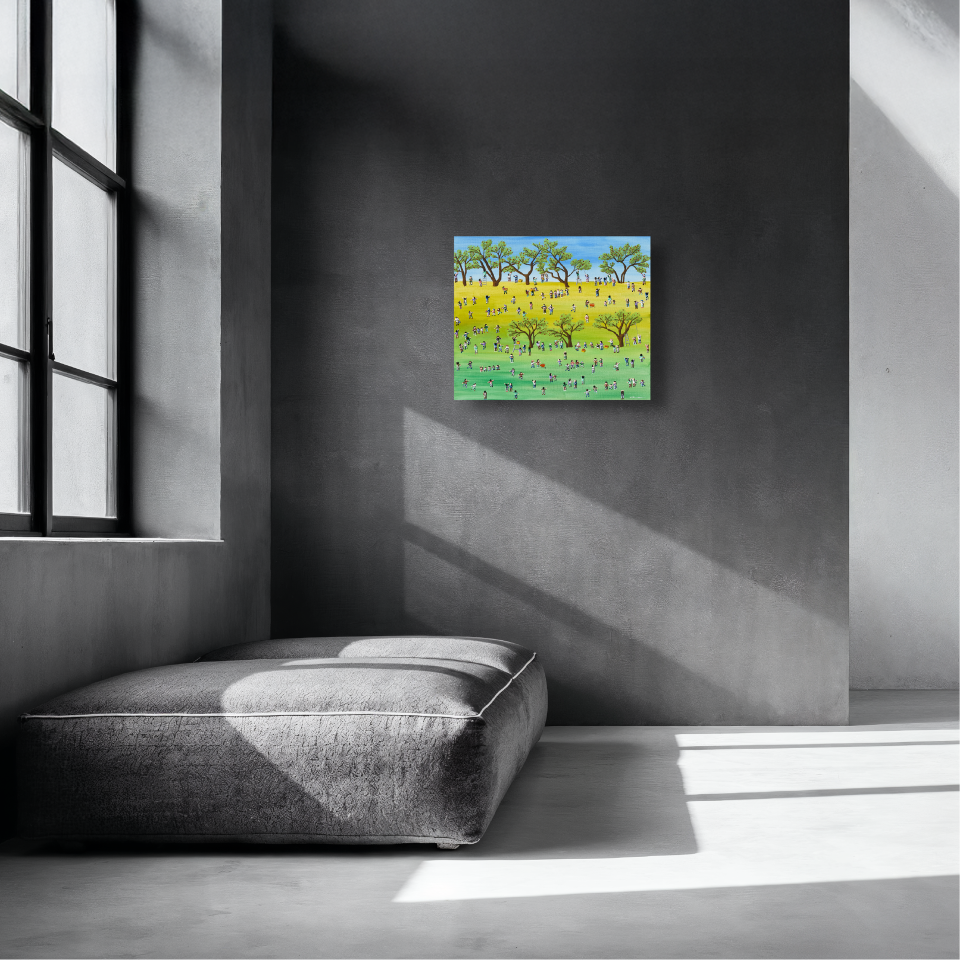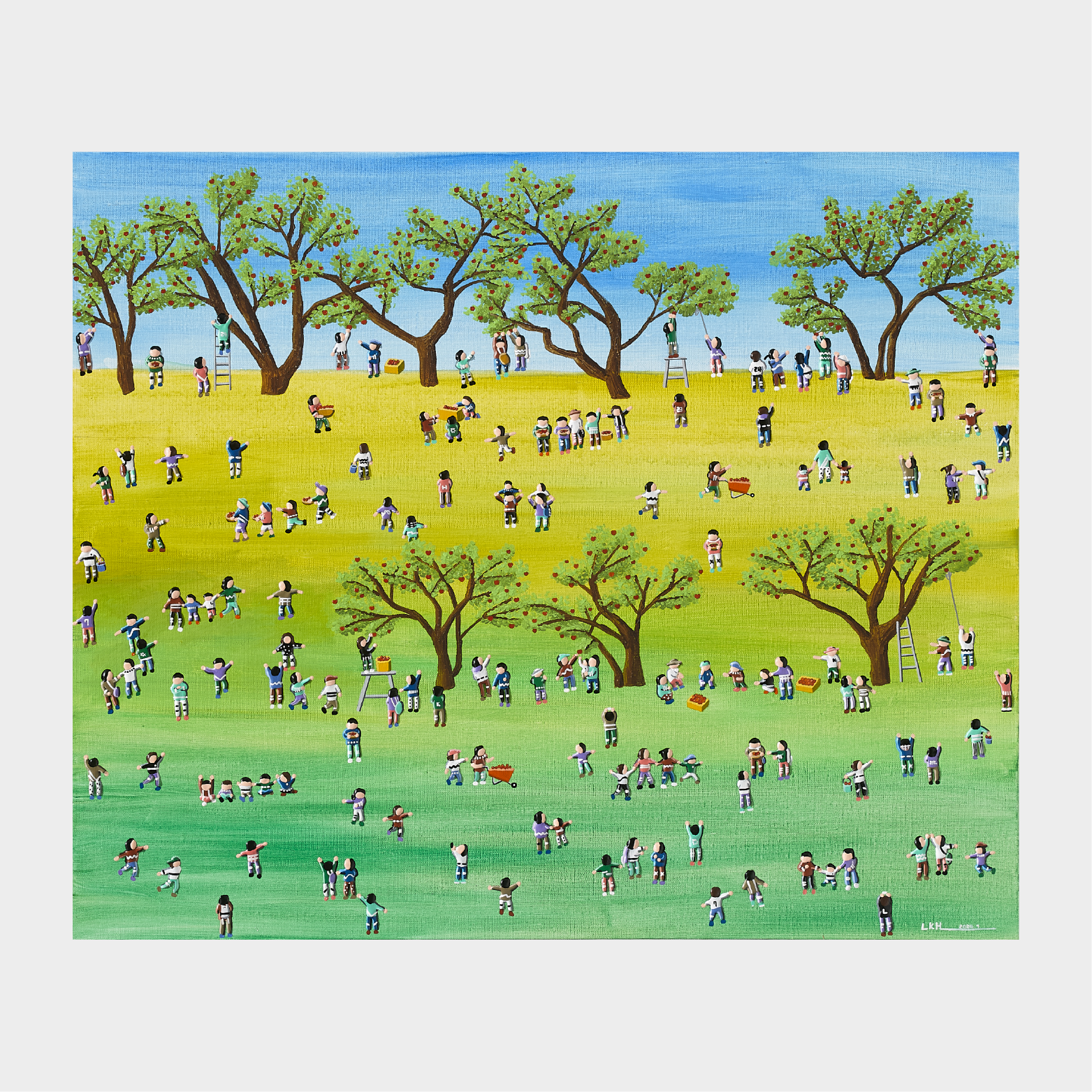 이경현 작가는 현대인의 일상을 멀리서 바라보며, 그 안에 담긴 관계와 감정을 포착합니다. 그의 화면에는 표정 없는 인물들이 반복적으로 등장하지만, 그 무표정 속에는 각기 다른 이야기가 숨어 있습니다. 일상의 군상들은 때로는 유머러스하게, 때로는 쓸쓸하게 그려지며, 분주한 삶 속에서 우리가 잊고 지내는 감정의 결을 환기시킵니다. 작가는 사람과 사회, 그리고 그 사이의 거리에서 생겨나는 미묘한 긴장과 공허를 섬세한 시선으로 풀어냅니다. 멀리서 보면 일정한 리듬으로 움직이는 작은 인물들이 하나의 패턴처럼 보이지만, 가까이 다가가면 각자의 제스처와 색감이 고유한 존재로 드러납니다. 이경현 작가의 작품은 개인과 사회의 관계, 익명성과 존재의 의미를 동시에 사유하게 합니다. 단순한 풍경처럼 보이지만, 그 안에는 우리가 살아가는 시대의 모습과 감정이 응축되어 있습니다.