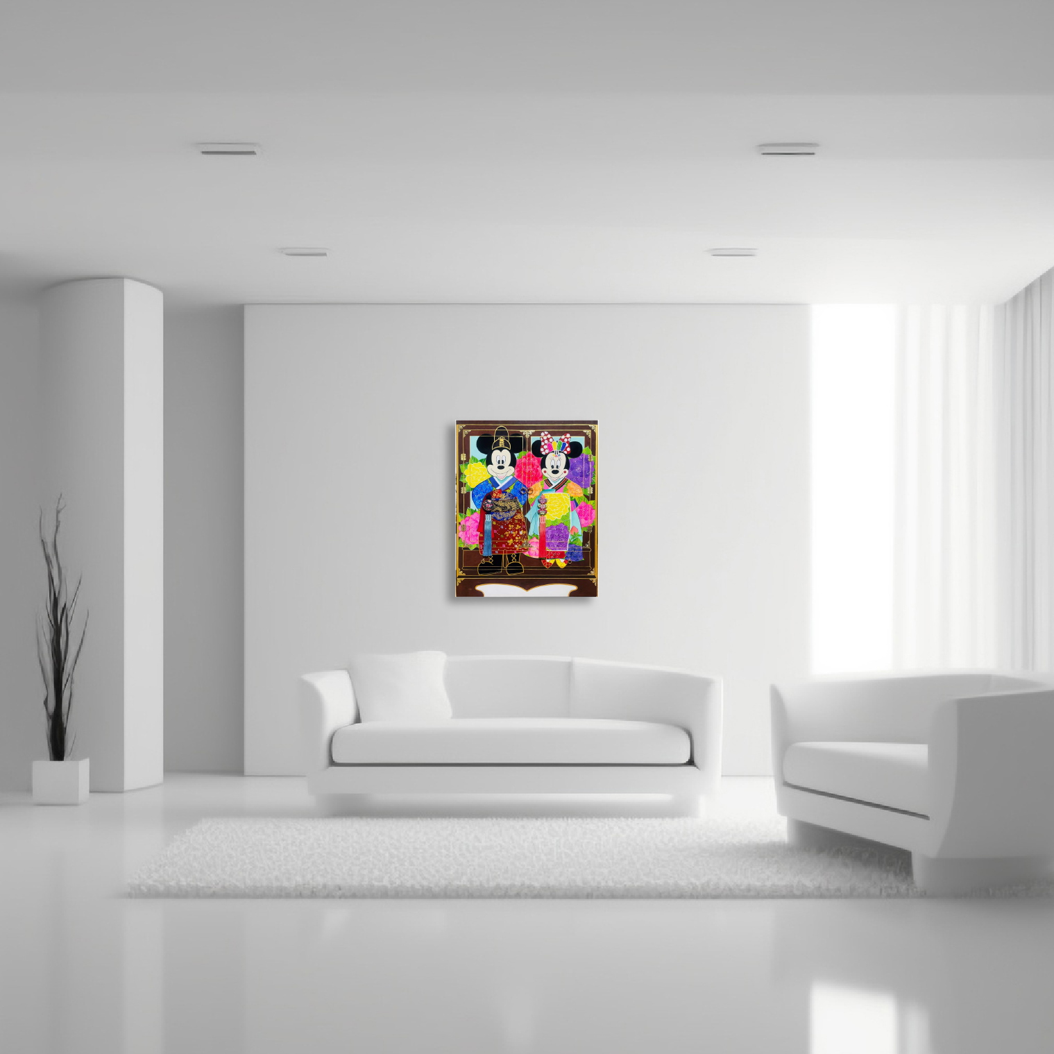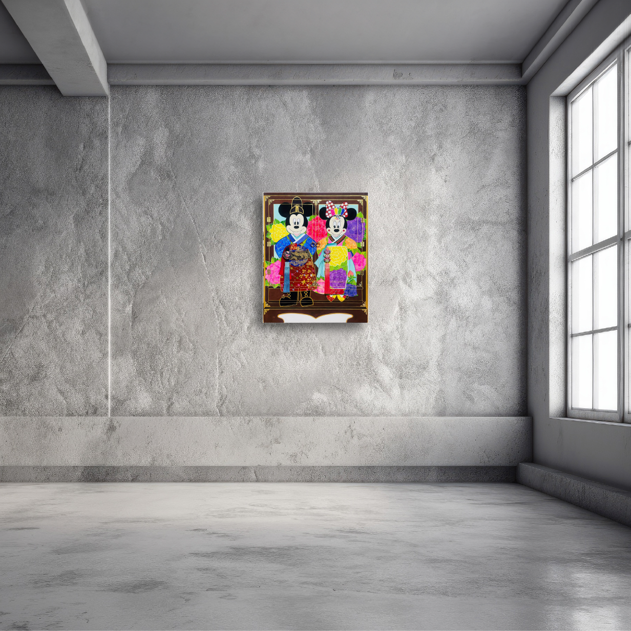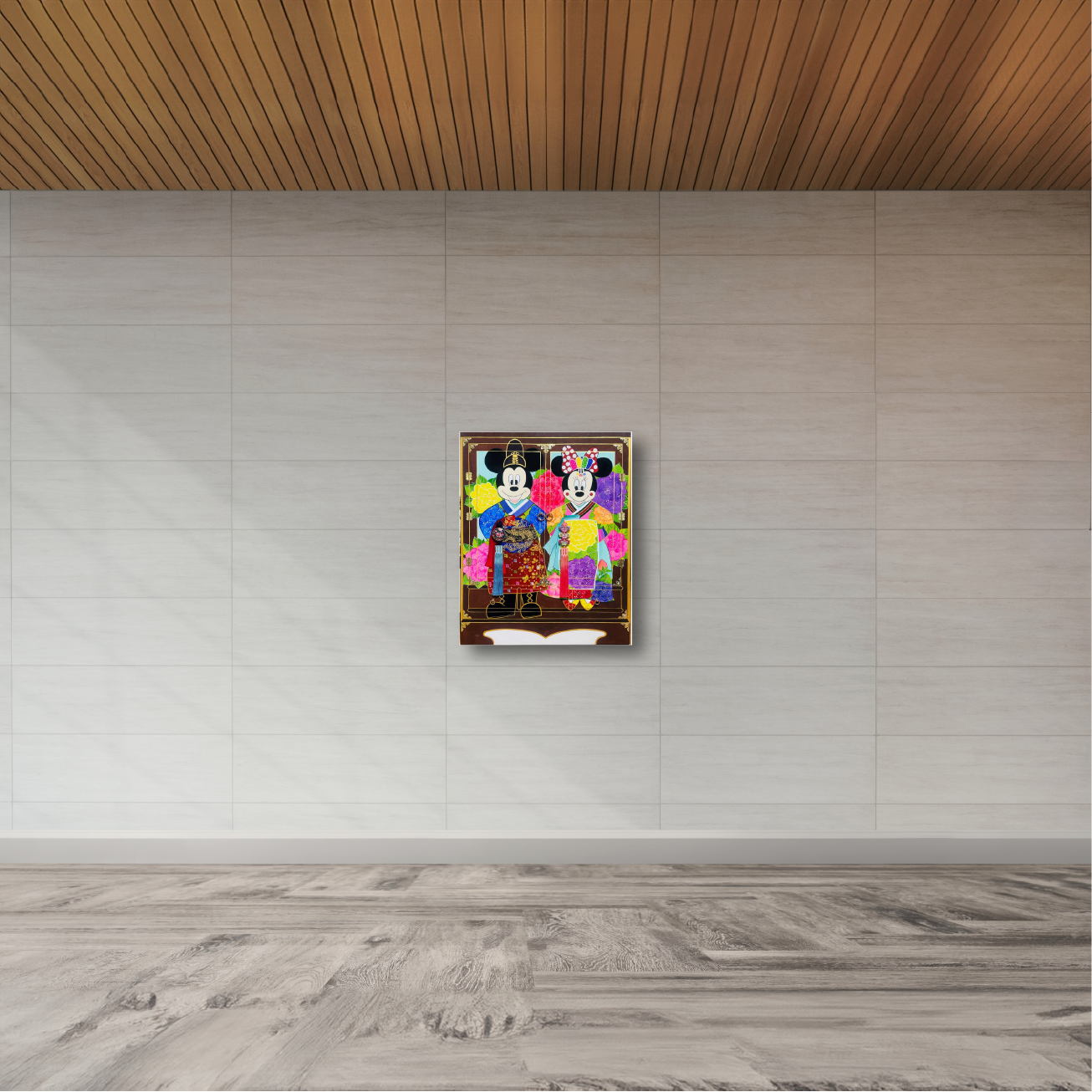 장지 위 채색(한국화 물감), 경첩, 모서리 장식