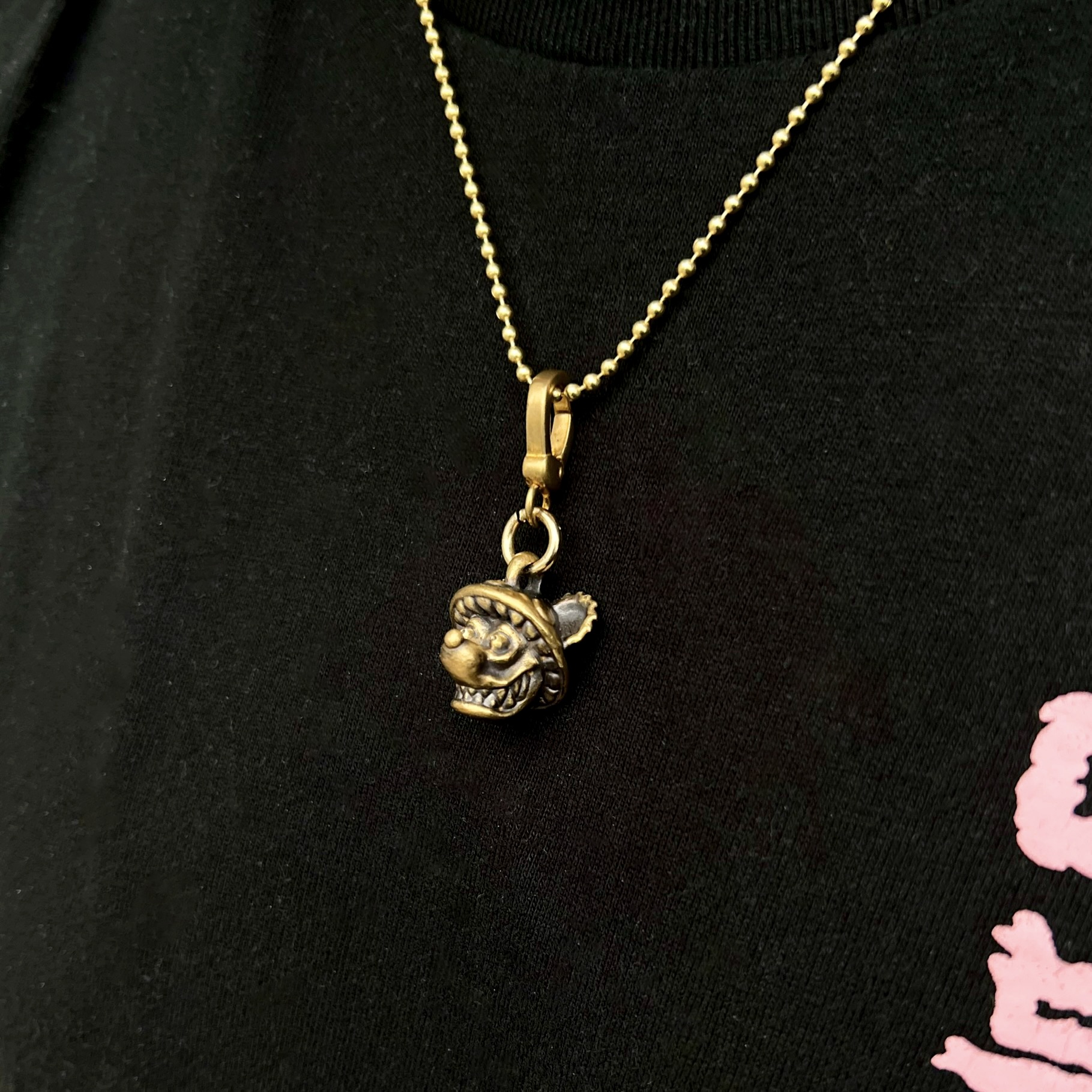 행운을 가져다주는 머쉬부쉬 Rat Fink버젼 황동 오브제입니다.