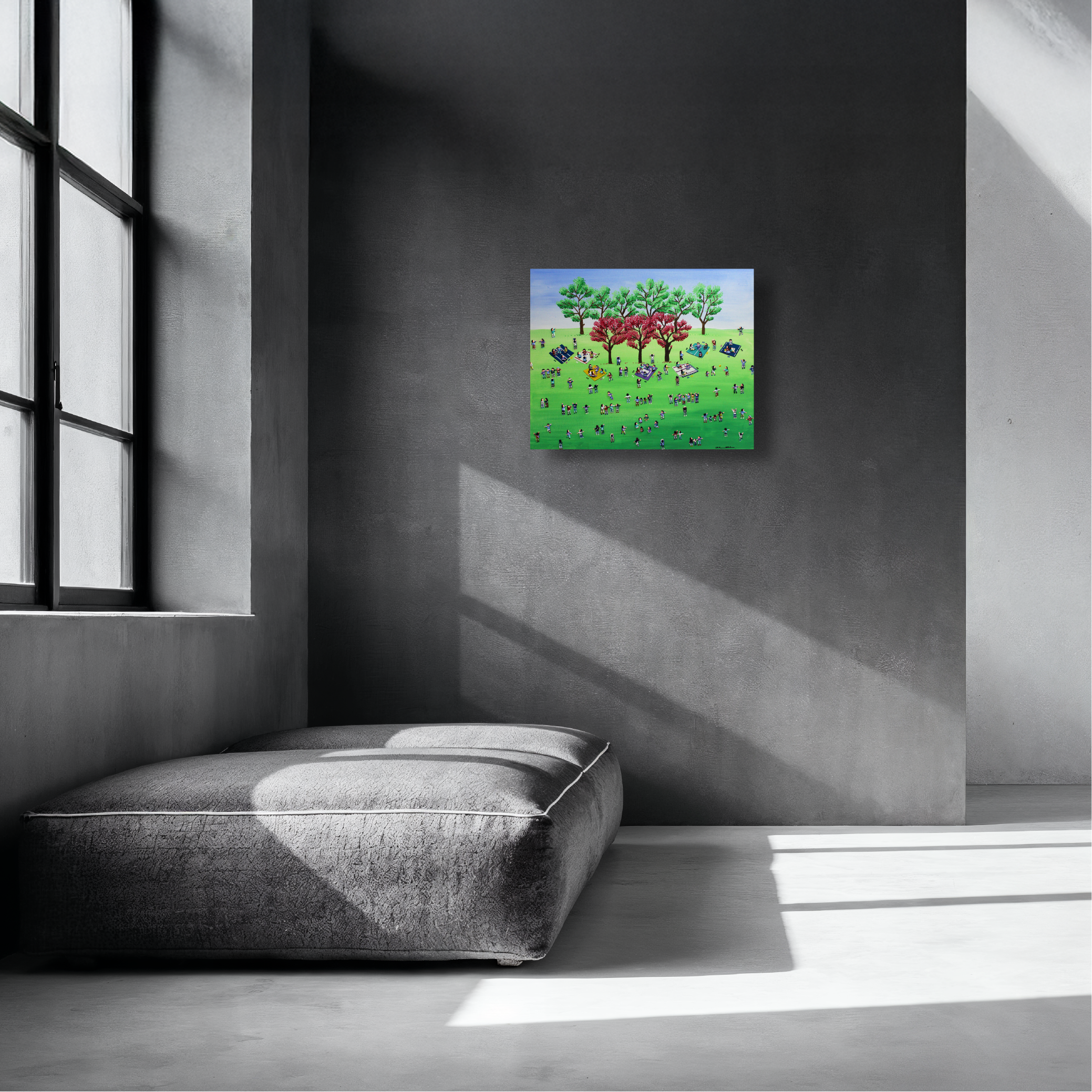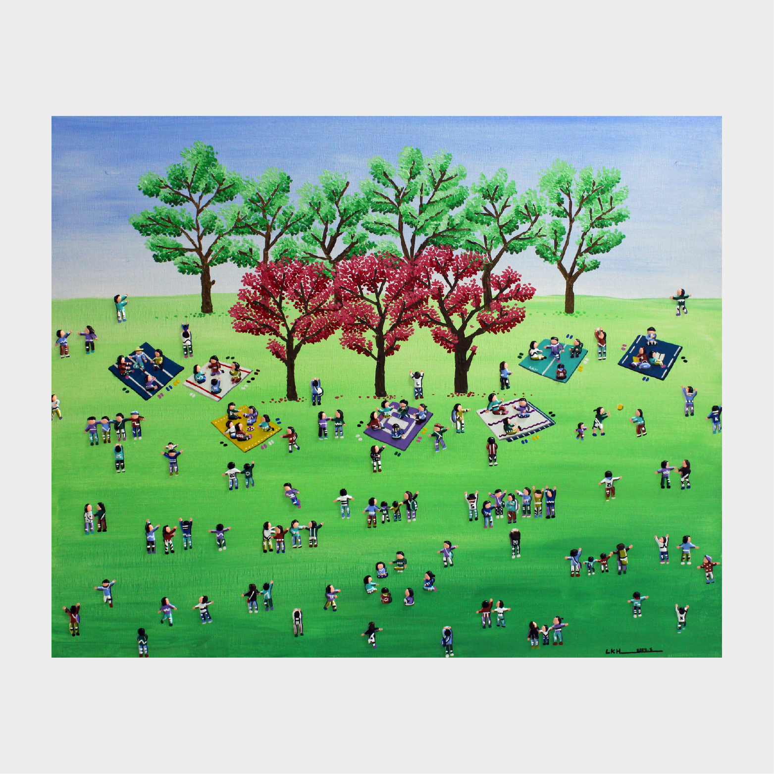 이경현 작가는 현대인의 일상을 멀리서 바라보며, 그 안에 담긴 관계와 감정을 포착합니다. 그의 화면에는 표정 없는 인물들이 반복적으로 등장하지만, 그 무표정 속에는 각기 다른 이야기가 숨어 있습니다. 일상의 군상들은 때로는 유머러스하게, 때로는 쓸쓸하게 그려지며, 분주한 삶 속에서 우리가 잊고 지내는 감정의 결을 환기시킵니다. 작가는 사람과 사회, 그리고 그 사이의 거리에서 생겨나는 미묘한 긴장과 공허를 섬세한 시선으로 풀어냅니다. 멀리서 보면 일정한 리듬으로 움직이는 작은 인물들이 하나의 패턴처럼 보이지만, 가까이 다가가면 각자의 제스처와 색감이 고유한 존재로 드러납니다. 이경현 작가의 작품은 개인과 사회의 관계, 익명성과 존재의 의미를 동시에 사유하게 합니다. 단순한 풍경처럼 보이지만, 그 안에는 우리가 살아가는 시대의 모습과 감정이 응축되어 있습니다.