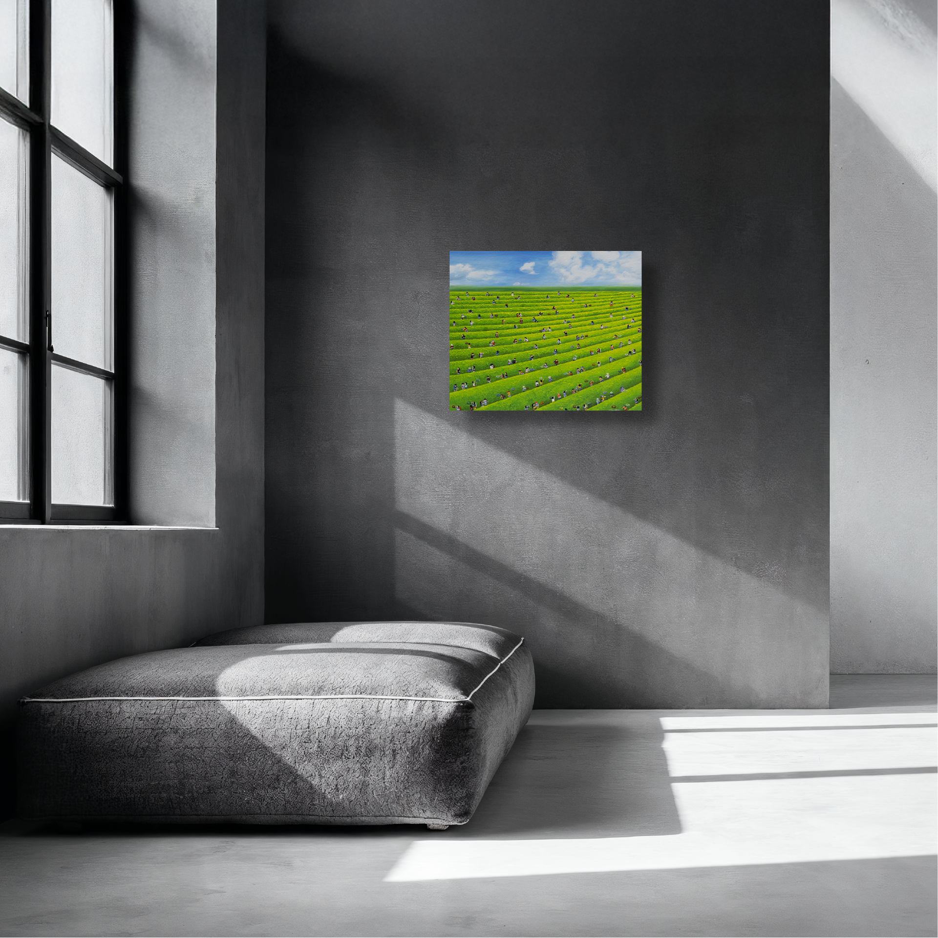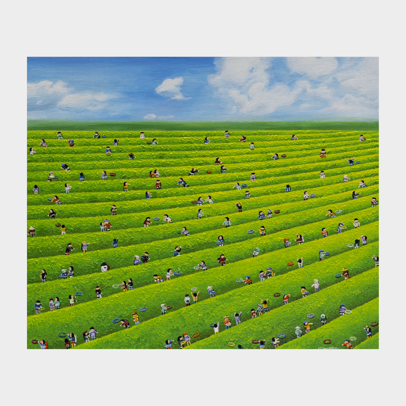 이경현 작가는 현대인의 일상을 멀리서 바라보며, 그 안에 담긴 관계와 감정을 포착합니다. 그의 화면에는 표정 없는 인물들이 반복적으로 등장하지만, 그 무표정 속에는 각기 다른 이야기가 숨어 있습니다. 일상의 군상들은 때로는 유머러스하게, 때로는 쓸쓸하게 그려지며, 분주한 삶 속에서 우리가 잊고 지내는 감정의 결을 환기시킵니다. 작가는 사람과 사회, 그리고 그 사이의 거리에서 생겨나는 미묘한 긴장과 공허를 섬세한 시선으로 풀어냅니다. 멀리서 보면 일정한 리듬으로 움직이는 작은 인물들이 하나의 패턴처럼 보이지만, 가까이 다가가면 각자의 제스처와 색감이 고유한 존재로 드러납니다. 이경현 작가의 작품은 개인과 사회의 관계, 익명성과 존재의 의미를 동시에 사유하게 합니다. 단순한 풍경처럼 보이지만, 그 안에는 우리가 살아가는 시대의 모습과 감정이 응축되어 있습니다.